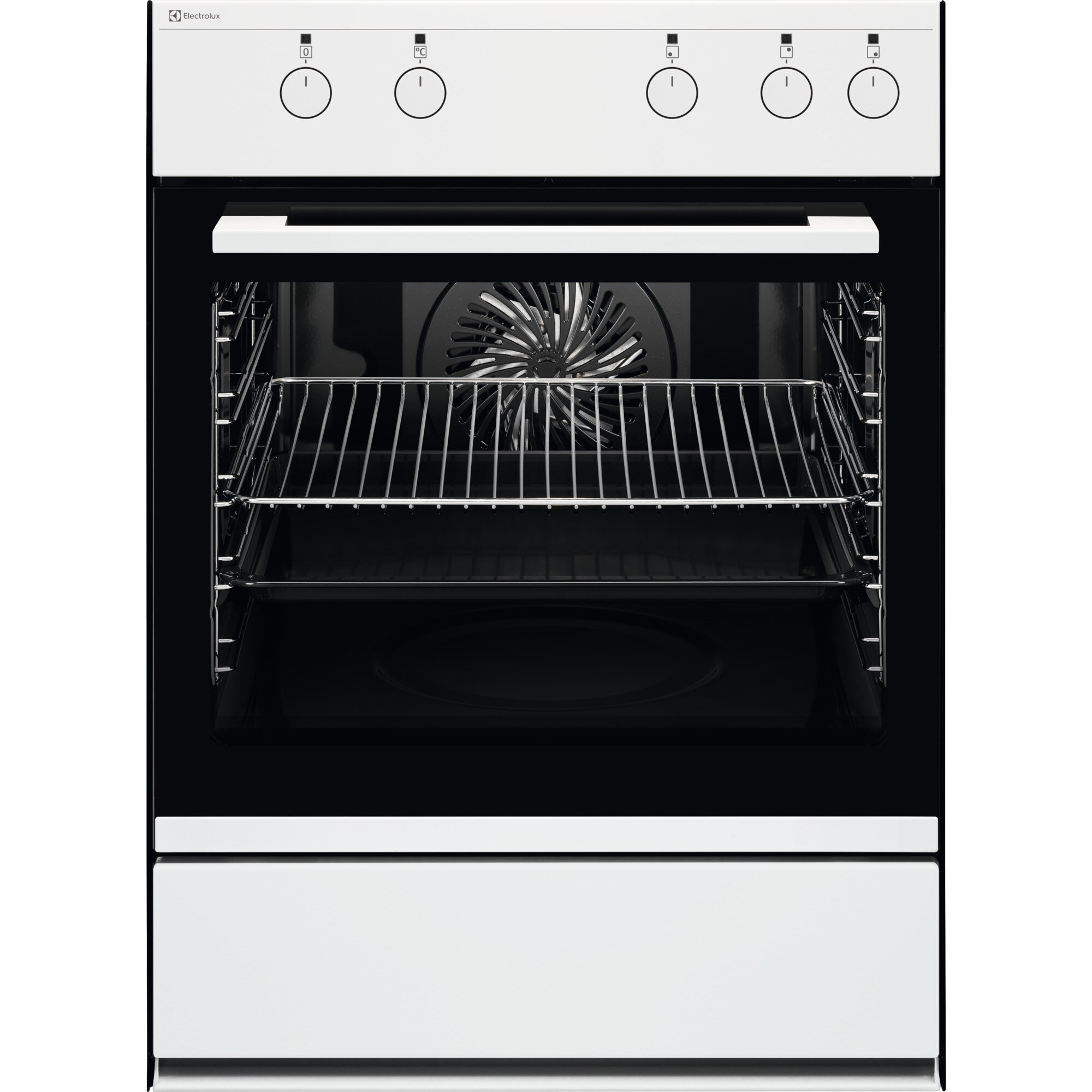 Electrolux EH7L2-3WE, Cuisinière encastrable, Blanc, Classe énergétique: A+, Commande: Sélecteur escamotable, Type de chauffage: air chaud, Max. temp. haut/bas chaleur °C: 275, Type de nettoyage: Swiss-Clean-Email, Tension (V): 400, Puissance (W): 9000, LxA (cm): 55x76